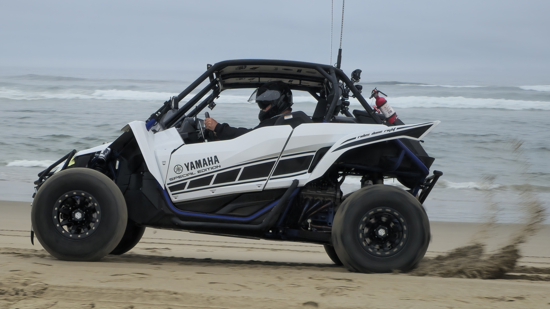 A high-performance sport side-by-side featuring a 998cc liquid-cooled triple-cylinder engine, Yamaha Sport Shift (YCCCS) paddle shifters with auto-clutch, On-Command 4WD with diff-lock, and fully adjustable FOX® Podium® RC2 shocks, all enhanced with significant upgrades for the year like a relocated, larger radiator with dual fans, upgraded brakes with steel lines, beefier engine internals, and new 29-inch Maxxis Bighorn tires on beadlock wheels for improved trail performance beyond just dunes.